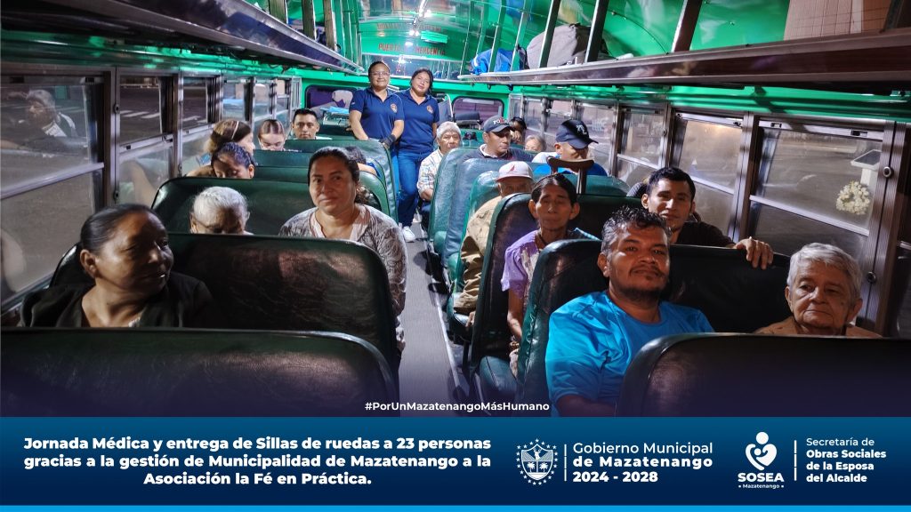 El pasado miércoles 24 y jueves 25 de septiembre, 23 vecinos de nuestra ciudad fueron trasladados al Hospital Ilario Galindo en San Felipe, Retalhuleu, donde recibieron atención médica especializada por parte de médicos extranjeros, así como el beneficio de sillas de ruedas que transformarán su calidad de vida.