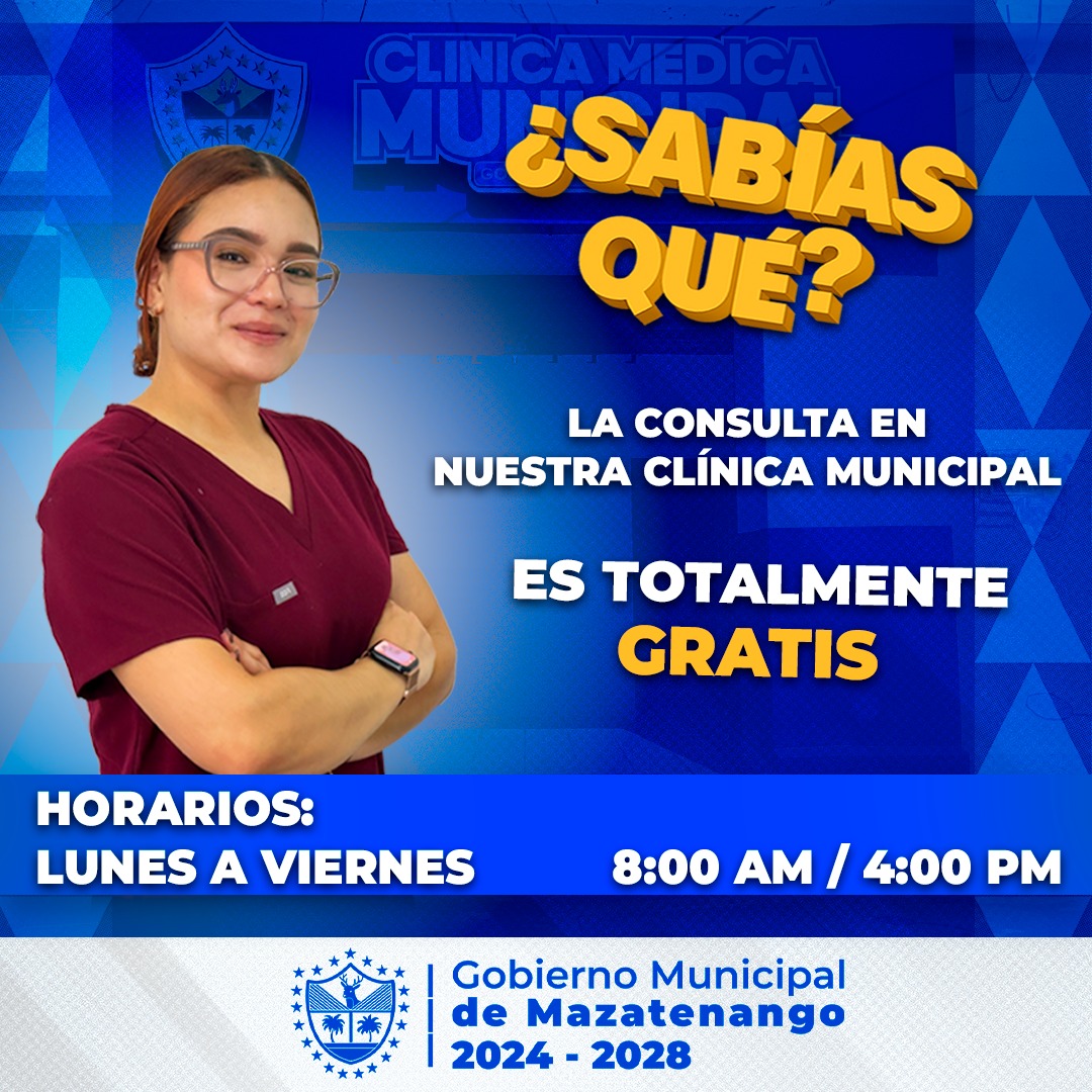Acércate y recibe atención médica de calidad sin costo, gracias al compromiso del Gobierno Municipal de Mazatenango 2024–2028 con la salud de todos.
