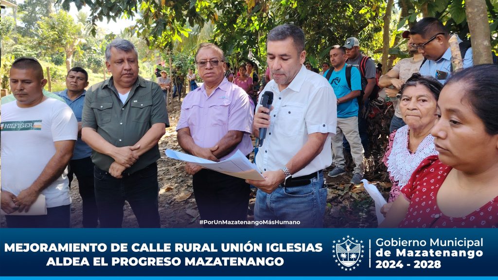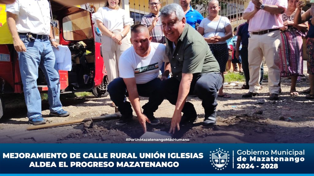 La Municipalidad de Mazatenango, reafirmando su compromiso con el desarrollo comunitario y el bienestar de los vecinos, ha dado inicio al proyecto de mejoramiento de calle rural en Unión Iglesias, Aldea El Progreso. Esta importante obra busca mejorar las condiciones de acceso, facilitar la movilidad vehicular y peatonal, y fortalecer la conectividad entre las comunidades rurales de nuestro municipio.