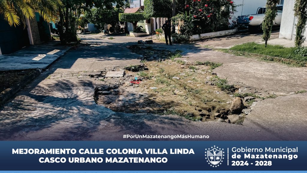 La Municipalidad de Mazatenango continúa trabajando por el desarrollo y el bienestar de nuestras comunidades, dando inicio al proyecto de mejoramiento de una de las calles principales en la Colonia Villa Linda, ubicada en el casco urbano de nuestro municipio.